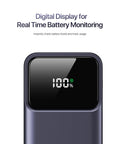 • HD Digital Display: Stay informed with a crystal-clear real-time battery monitor. No more guessing—the precise percentage display lets you know exactly when it’s time to recharge the power bank.
