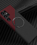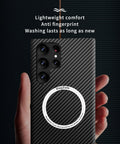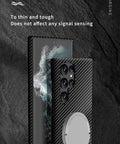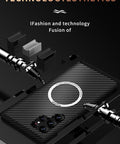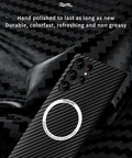 Elevate your Samsung Galaxy S22 with this phone case, featuring a sleek carbon fibre texture for a stylish look. The built-in magnetic ring supports hassle-free wireless charging, making it easy to power up your device without cords.