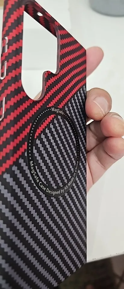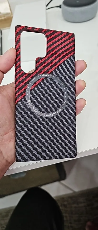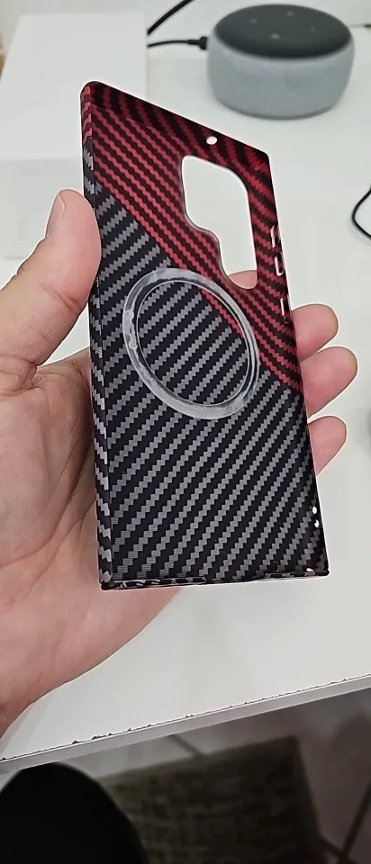 This EASY GADGETS Galaxy S23 Ultra phone case is crafted with a unique carbon fiber texture for a sleek and stylish look. Its magnetic ring also offers convenient support for wireless charging, allowing you to easily charge your device without the hassle of cords.
