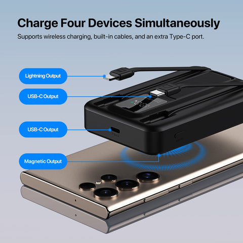 Yes, the ELEKFONE power bank supports simultaneous charging through its dual USB-A ports and USB-C port. You can charge up to three devices at once efficiently.