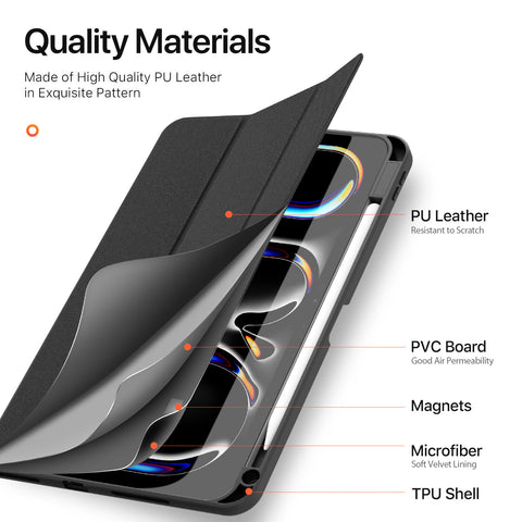 iPad Pro 11 Case (2024) – Black Magnetic Case with Pencil Support and Viewing Stand