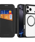 iPhone 17 Pro Black PU Leather MagSafe Wallet Case with Card Storage