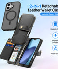 iPhone 17 PU Leather Flip Wallet Case with Card Slots & Detachable Cover