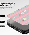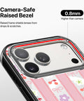 Cherry Bloom brings sweet picnic vibes with soft pink stripes, tiny bows, cherries, and little flowers. It’s cute without being loud, and the built-in magnetic ring keeps your everyday charging and accessories simple.