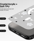 Clean, cute, and easy to match — Star Bows keeps it simple with black-and-white stars, tiny bows, and soft stripe accents on a clear back. A built-in magnetic ring is included, so magnetic charging and accessories stay tidy and secure.