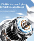 Mini handheld fan with strong airflow — 5 speeds, USB-C, metal hook, desktop-ready.