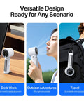 Stay cool anywhere with a compact, quiet fan you can hold, hang, or park on your desk.
