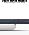 • The sleek exterior is easy to slide in and out of pockets. Wireless Charging without having to remove the case. **Reminder - Please remove all cards from the hidden card slot during wireless charging.