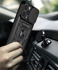 iPhone 13 Pro Max Phone Case with Built-in Ring Kickstand and Lens Cover
